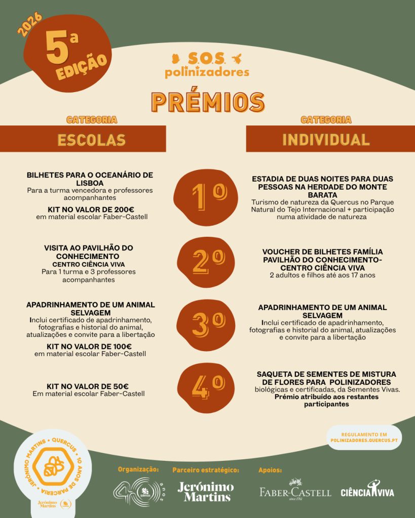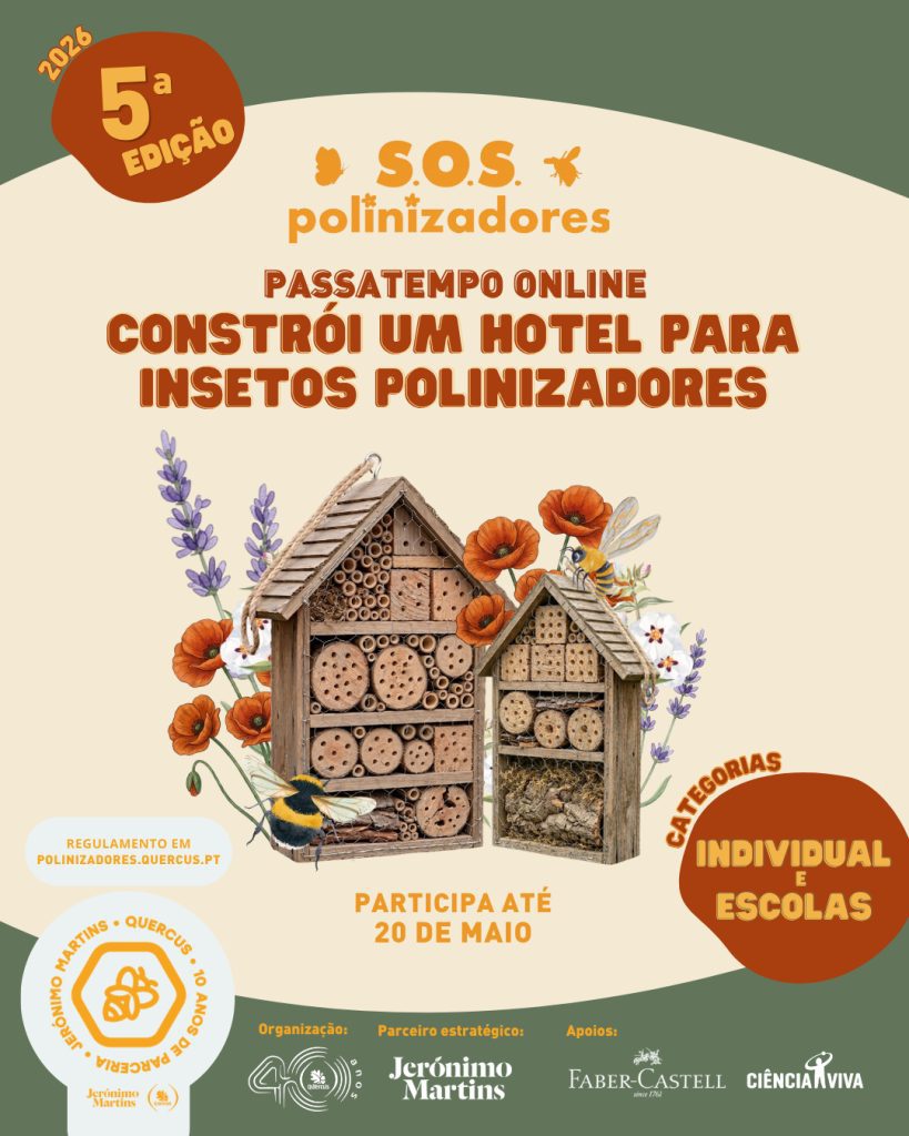 No Dia Mundial da Terra, 22 de abril, a Quercus lança a 5ª edição do passatempo “Constrói um Hotel de Insetos Polinizadores”, integrado na campanha SOS Polinizadores, voltando a desafiar cidadãos e escolas a dar largas à sua criatividade e assim ajudarem a proteger estes seres vivos fundamentais para a nossa sobrevivência.