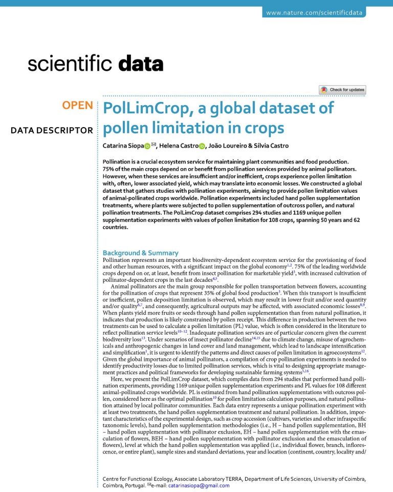 Foi publicado um artigo científico sobre uma base de dados, PolLimCrop, que aborda os efeitos da limitação de pólen nas […]